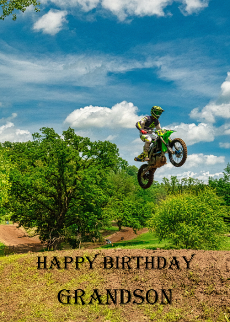 Motorbike rider mid air Grandson birthday