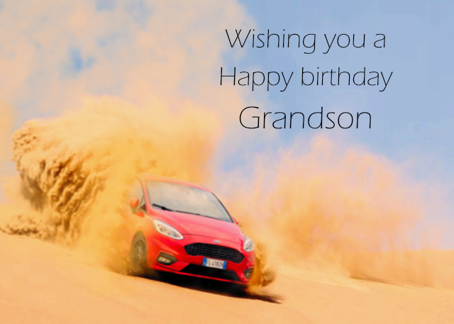 Red Ford Fiesta racing on dusty road Grandson birthday