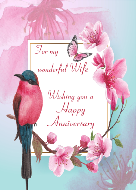Beautiful watercolour style bird and flowers Wife Anniversary