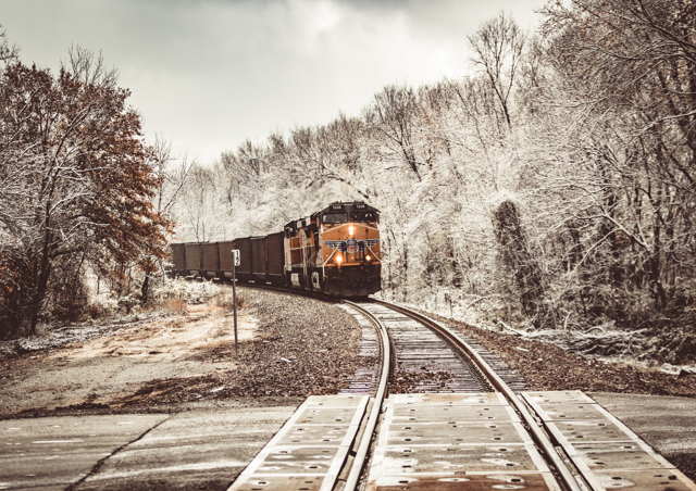Freight train in snowy conditions