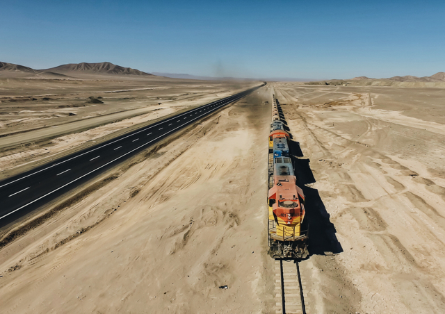 Aerial view of cargo train