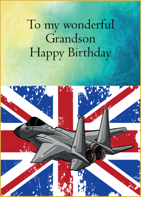 Fighter jet on Union Jack flag Grandson birthday